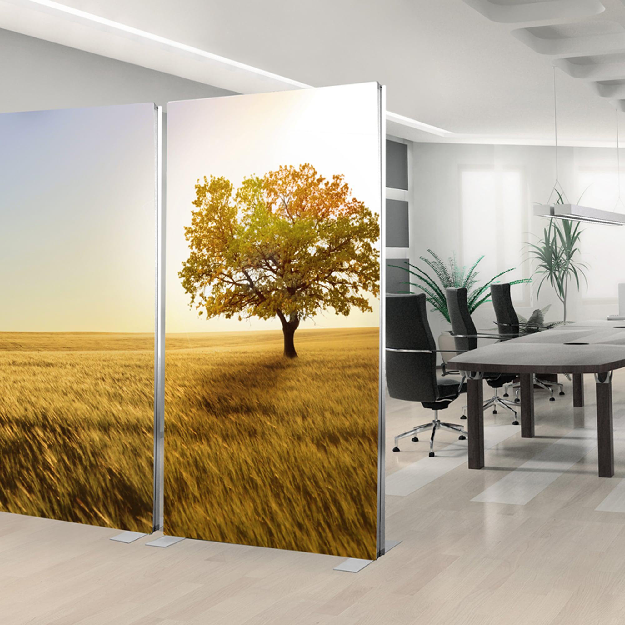 Framframe silentART è una decorazione per interni con un nucleo intelligente: dietro il banner in tessuto è presente materiale isolante fonoassorbente.In questo modo, i pannelli potranno essere utilizzati come pareti divisorie flessibili, quadri acustici e altre decorazioni a parete o a sospensione. Il banner tessile può essere cambiato facilmente in modo da rendere sempre attuale il prodotto per l'insonorizzazione degli spazi.